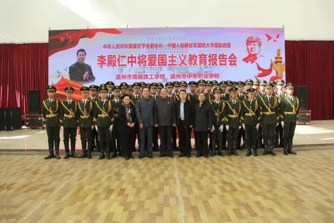 ▲李殿仁中将参观考察滨州市高级技工学校并作爱国主义教育报告