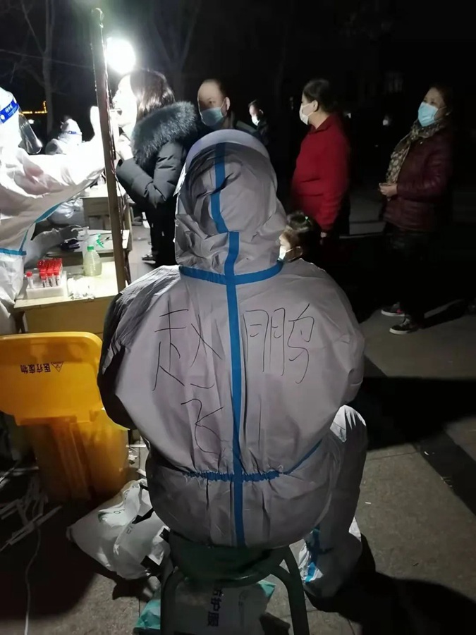 赵鹏飞,电气工程教学中心党支部书记、招生就业科科长。疫情来袭,赵鹏飞同志主动请缨加入疫情防控志愿者队伍,在经过医护人员的专业培训后,协助文苑社区书香名居小区进行全员核酸检测工作。他头戴防护面具、身穿防护服、一次性医用手套,引导居民有序排队、告知居民相关注意事项、帮助老年人扫码填写个人信息……经常从早上一直工作到凌晨,等医护人员离开,他才拖着疲惫的身躯回家休息。