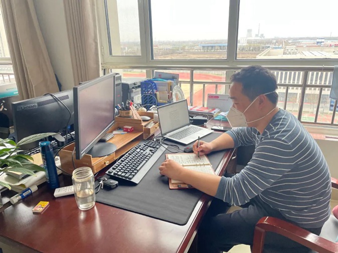 同时,他经常了解智能制造教学中心师生的学习和生活情况,做好线上教学的监督检查;每天了解科室中被隔离同志的状况,做好心理疏导和安抚。