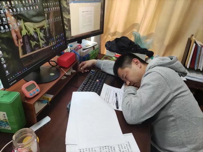 为了督促班级学生学习,她主动制定了适合自己班级学生的教学计划,建立了督导组,制定了班级网课管理制度,并与学生同步上课,全程跟踪,发现问题及时纠正。她每两天安排一次线上班会,了解学生现状,指导学生学习,安抚学生情绪,并针对个别问题学生进行单独疏导。同时,为保障学生居家安全,她利用微信群、腾讯会议等第一时间把最新的学校通知和防疫知识传达给每一位学生及家长。处理完班级事务,还要进行备课、批改作业,每天忙到凌晨才能休息。