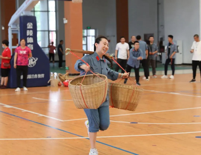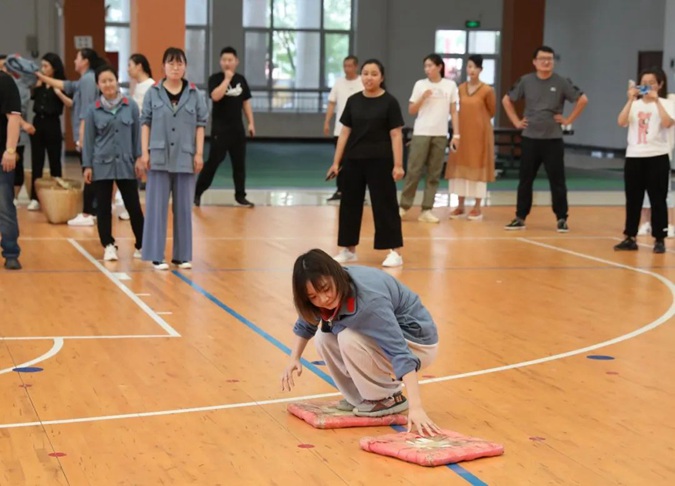 项目以体验趣味竞技的形式开展,融入了红军长征、过草地、扁担送军粮等革命历史元素,让教职工们在运动中感受老一辈革命人艰苦奋斗、自强不息的红色精神。赛场上,参赛队员个个精神饱满、斗志昂扬,大家团结一心、密切配合,在趣味中加强合作,在竞技中收获快乐,充分展现教职工拼搏奋进、积极向上的精神风貌。