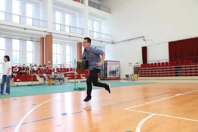 本次运动会设艰难长征、红军过草地、运送弹药、南泥湾抢收、挑担运粮5个红色主题项目,各教学中心部派出八支代表队参加比赛。学校党委书记、校长王树林,党委委员、纪委书记、市纪委监委监察专员宋志刚到现场观摩。