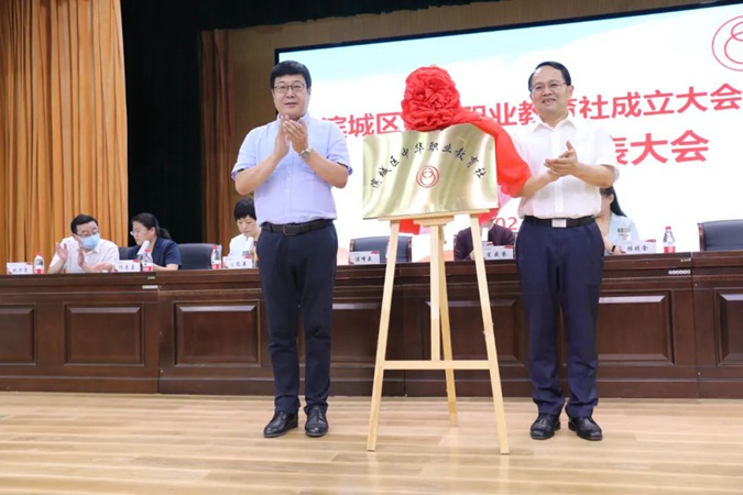 满峰泉、马龙为滨城区中华职业教育社揭牌