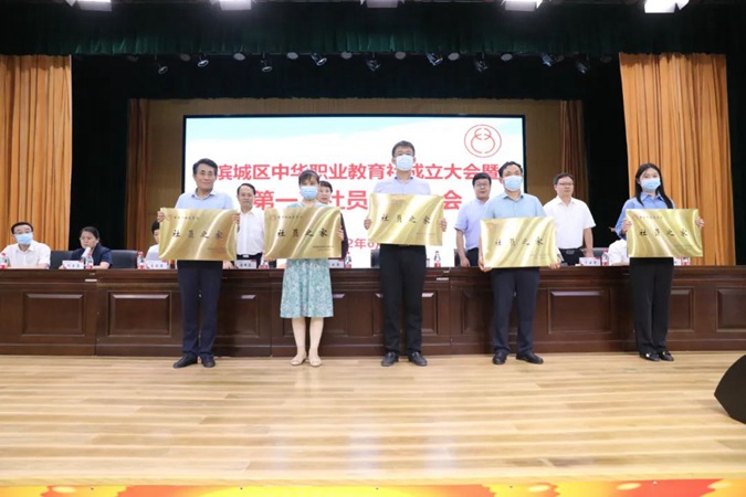 与会领导为滨城区中华职业教育社首批实训基地授牌