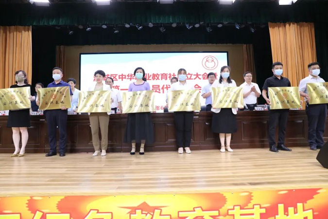 与会领导为滨城区中华职业教育社首批社员之家授牌