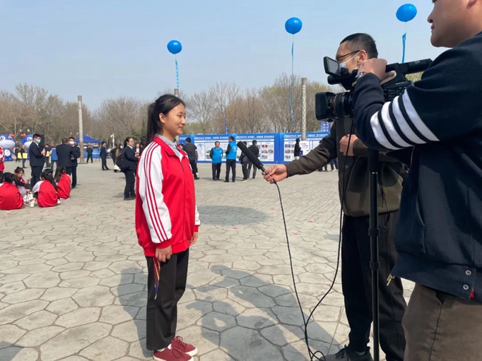 单浩然接受滨州电视台采访,她表示,通过这次活动,让我走出了校园,知道了滨州水资源的稀缺,回到学校以后,我要向周边的同学宣传节约用水,养成节约用水的好习惯。
