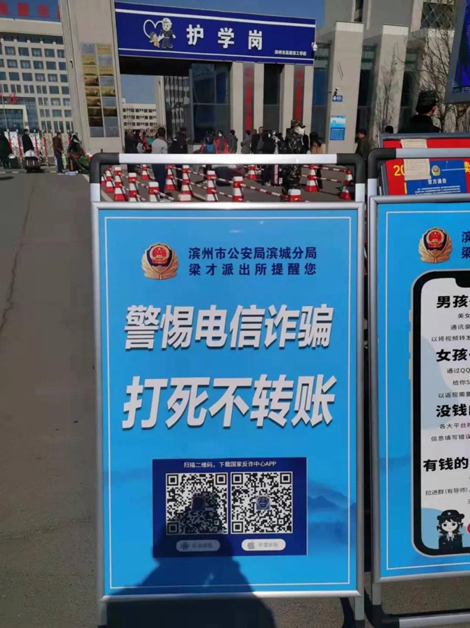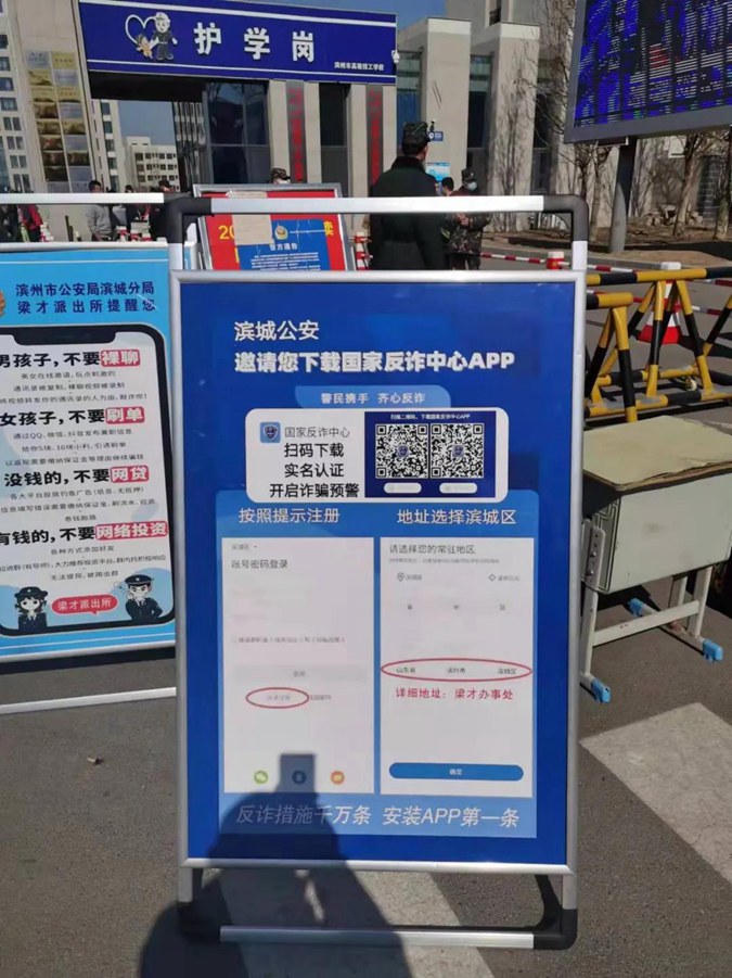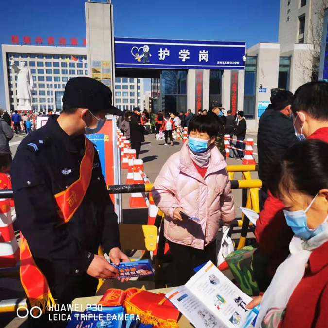 2月20日下午,滨州市高级技工学校与滨州市公安局滨城分局梁才派出所利用春季开学返校时机,联合开展反诈宣传进校园活动,对师生、家长开展防范电信诈骗知识宣传。