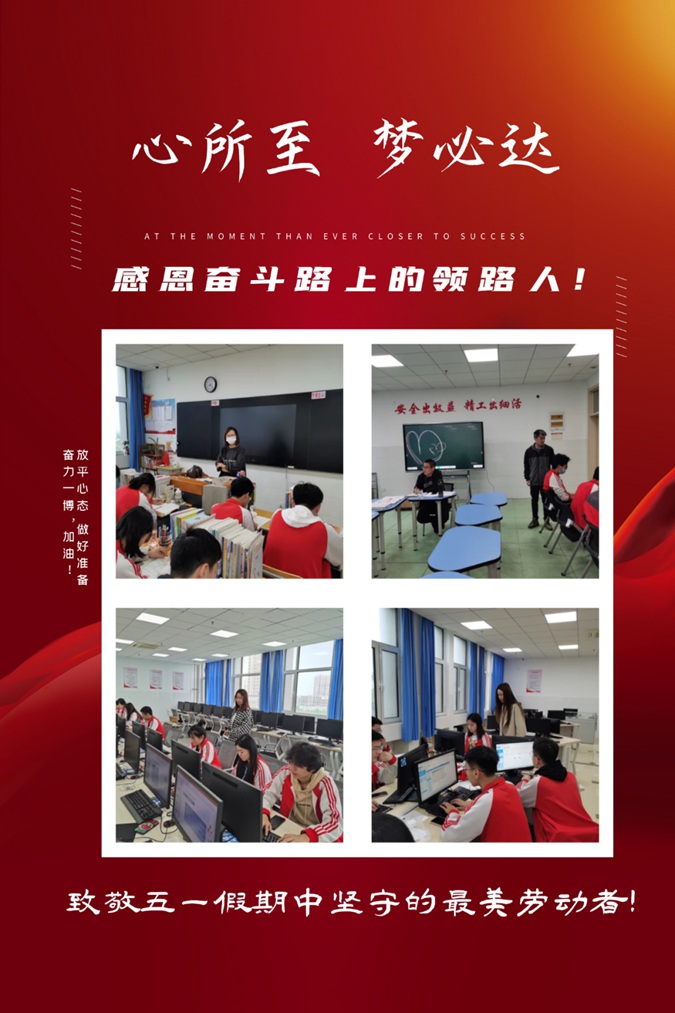恩师掬取天池水,洒向人间育新苗!今天,是“五一”假期的第一天,距离职教高考还有48天,滨州市中等职业学校(滨州市高级技工学校)升学部教师、值班组人员、军为教官以及餐厅、物业工作人员全部放弃休息,为高三学子们保驾护航。