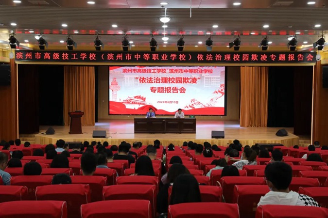 滨州市高级技工学校(滨州市中等职业学校)举行依法治理校园欺凌专题报告会