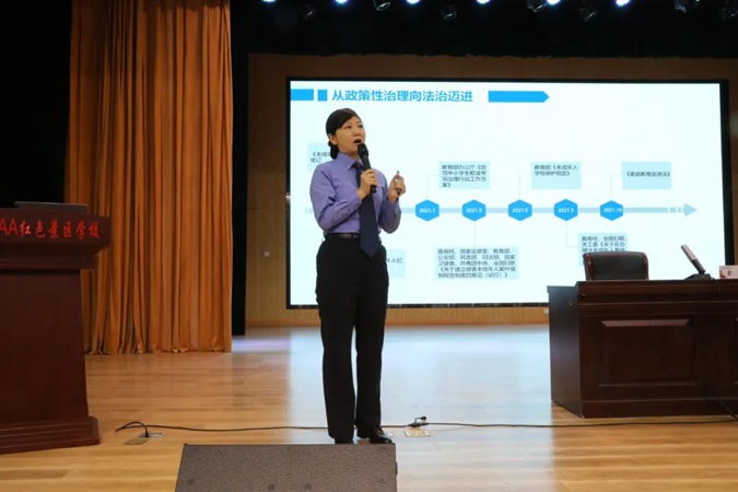 余金以《依法防治校园欺凌》为题,从预防校园欺凌的法治化进程、校园欺凌的法律内涵、如何防治校园欺凌三个方面对预防校园欺凌的法律依据、校园欺凌产生的原因和如何防治校园欺凌进行了详细的分析。并结合典型案例,引导老师们进一步了解了校园欺凌的性质、危害及预防、处理措施。