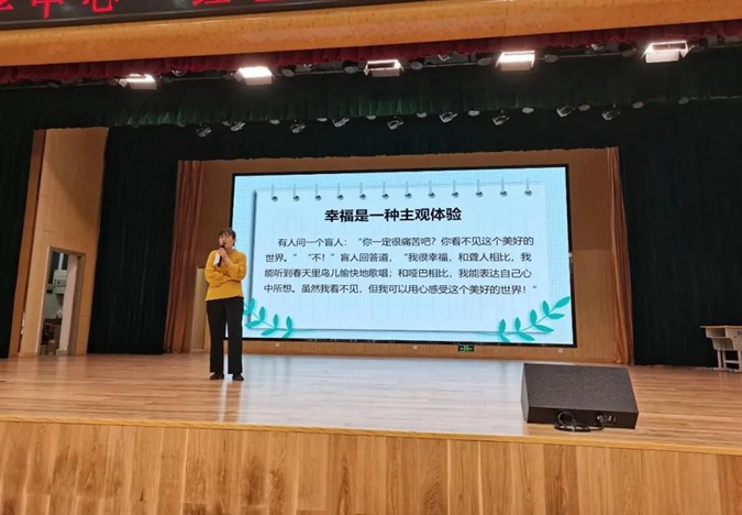 5月18日下午,经贸管理教学中心组织全体学生聆听了一场心理健康主题讲座。讲座的主讲人是青年教师朱秋平,主题为《做一个幸福的人》。