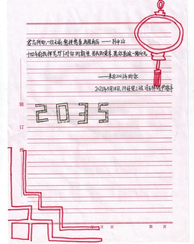 经贸管理教学中心组织学生开展“写给2035年的我”红色寄语活动,引导学生在全面建设社会主义现代化国家的新征程上坚定信念,不负时代,展望未来,奋勇争先。