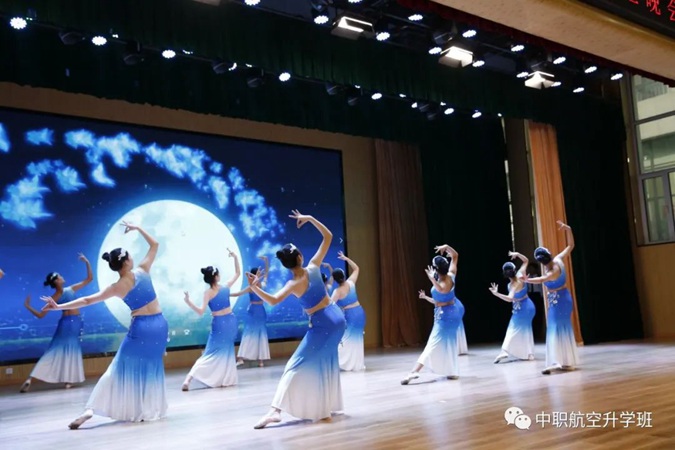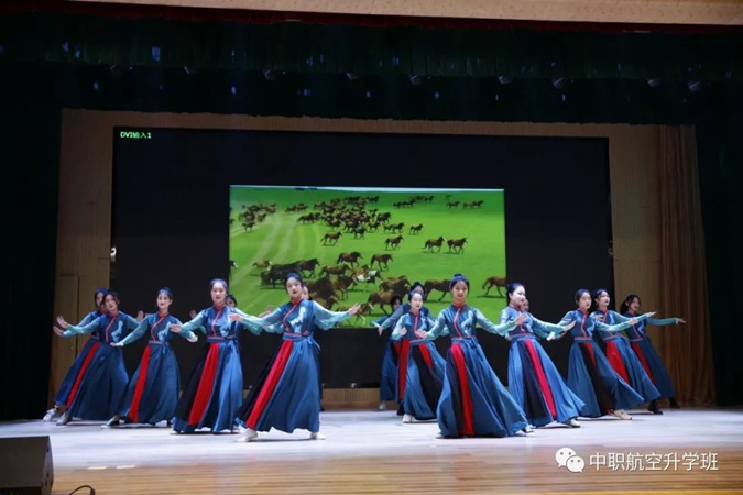 活动中,学生表演形式多样,有礼仪操、T台秀、客舱服务展示,也有集体舞、小品、相声,既传递了家国爱、父母恩,也表达了师生情、同学谊,既是一场汇报演出,更是一场视觉盛宴。