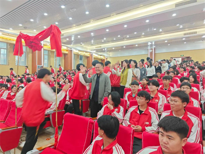 2021级级部主任付明军以“父母的手”开篇,为学生作了5分钟的励志演讲《接棒、冲刺、过线》。
