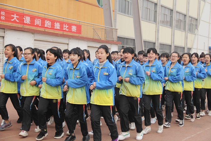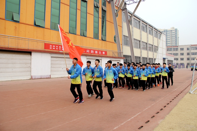 3月22日上午,滨州市高级技工学校操场上整齐响亮的口号声响彻天空,这里正在举行全校跑操比赛。