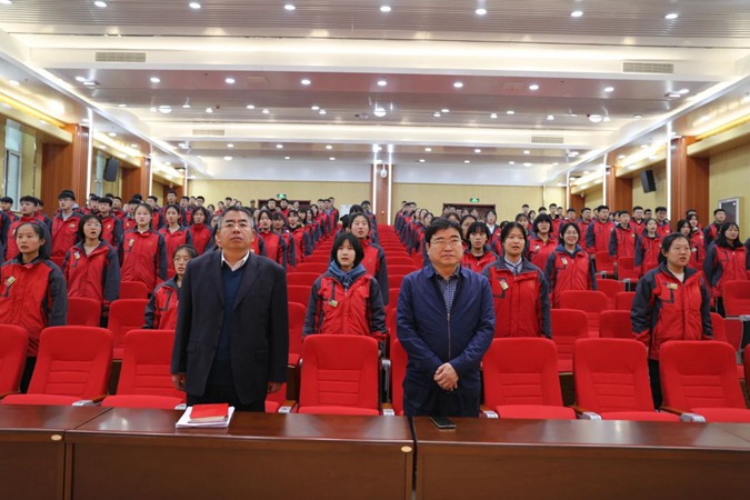 上午11点,誓师大会在庄严肃穆的奏唱国歌仪式中拉开序幕。