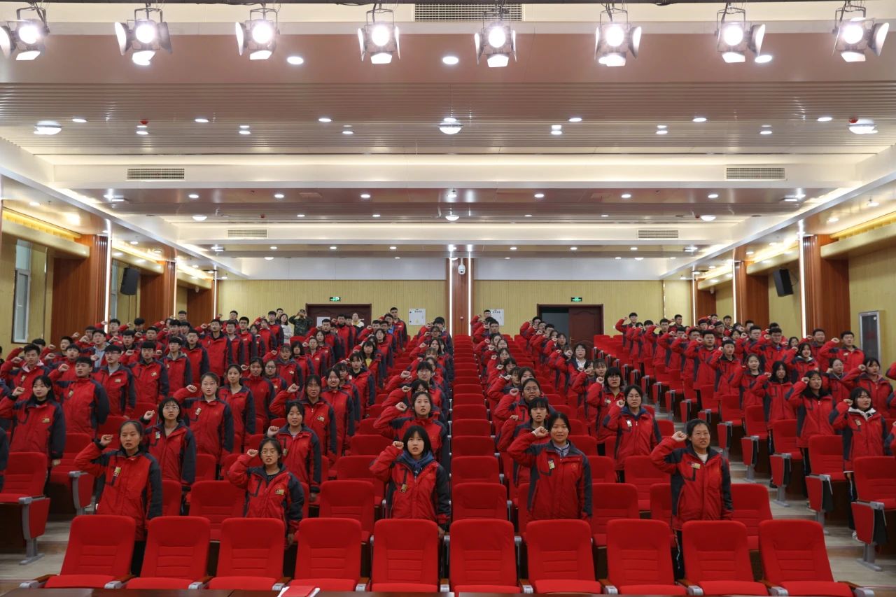 最后,全体学生庄严宣誓:十年一剑,时不我待;坚定信心,发奋自强;夯实基础,避短扬长;查缺补漏,重点盯防;挑战自我,斗志昂扬;全力备考,圆我梦想;苦战高三,再创辉煌!