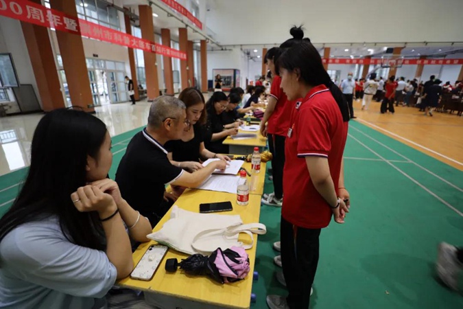 急雨洒高城,企业热情增,各地用人单位冒着风雨驱车赶来。据悉,参与洽谈会的有74家企业,提供300余个工作岗位供学生选择,既有滨州中裕食品有限公司、华纺股份等本市企业,也有海尔智家、海信日立空调系统有限公司、上汽通用五菱、奇瑞汽车、齐鲁制药等外地企业。