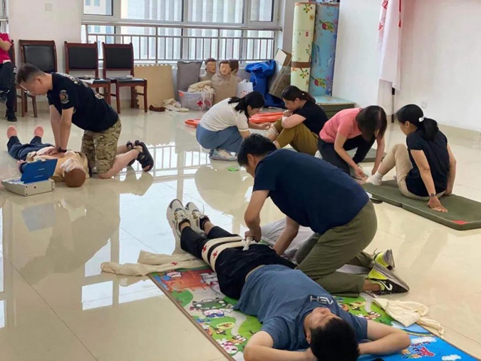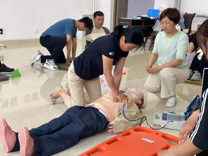 培训中,红十字会救护培训讲师通过理论、现实案例和实际操作,详细讲解急救的原理、规范流程、操作技巧等,并采用模拟人道具和教具,指导学员们一一进行规范操作,现场修正手法,巩固学习内容,提升实际操作能力。