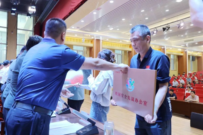 仪式上,宣读了山东省法院《关于增设司法先议试点单位的通知》,举行了校园安全先议办公室集体授牌仪式,滨州市高级技工学校学工科副科长程旭东上台接受授牌。