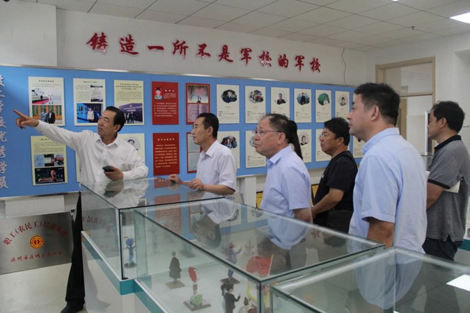 李文国一行参观了学校东方红广场、韶山楼红色育人展厅,途经红色长廊,观看了井冈山楼和遵义楼红色文化,在学校3D打印创新工作室观摩了师生作品,随后参观了南昌楼红色展藏馆。最后,学校将3D打印室学生制作的毛主席塑像赠予客人做为留念。