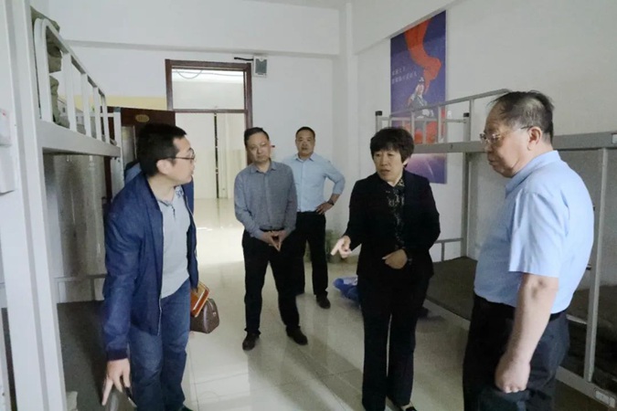马书花一行参观了韶山楼、井冈山楼、南泥湾师生劳动基地及古田楼学生公寓、北平楼图书馆,实地了解学生管理、公寓管理等情况。