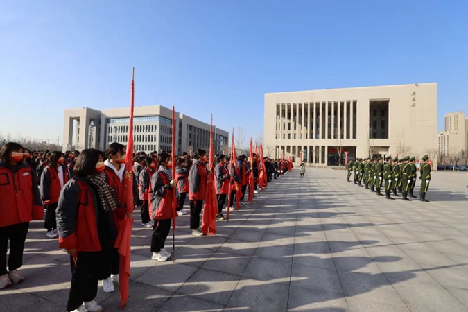 12月20日,滨州市高级技工学校4500名师生齐聚东方红广场,举行升国旗献花篮仪式,纪念毛主席诞辰128周年。激昂的《义勇军进行曲》在东方红广场上空响起,鲜艳的五星红旗冉冉升起,风雨如晦的年代仿佛又呈现面前,“中国人民从此站起来了”犹在耳畔。
