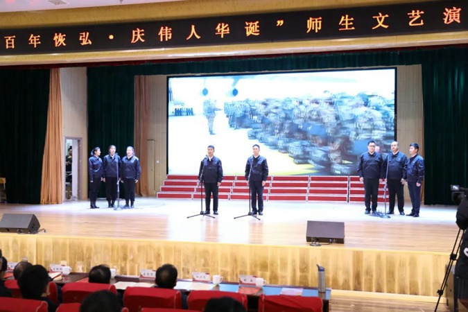 漫漫征途,回忆峥嵘岁月;声声嘹亮,歌颂百年初心!12月24日下午,“颂百年恢弘 庆伟人华诞”纪念毛泽东诞辰128周年师生文艺演出在滨州市高级技工学校北平楼报告厅拉开帷幕。党委书记、校长王树林,党委副书记、副校长孟维赞,党委委员、副校长刘仲凯,党委委员、副校长刘岳,党委委员、纪委书记、市纪委监委监察专员宋志刚,部分退休老领导及全体教职工观看演出。整场比赛分为《星火燎原》《建国伟业》《改革向前》《复兴之路》四个章节,各教学中心部、餐厅及实习工厂教职工代表激情演绎了《东方红》《社会主义好》《大中国》《再唱山歌给党听》等一首首脍炙人口的红色歌曲和时代新曲,并穿插了筝韵书画表演《水墨丹青》和诗歌朗诵《领袖》,表达技校人对伟大领袖毛主席的深切缅怀,对祖国的无限热爱与深情祝福。