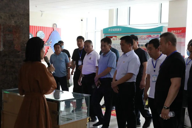 6月22日,滨城区退役军人事务局党组成员、副局长吴荣宝,退役军人服务中心主任卜凡军带领全市50余名“兵支书”到滨州市高级技工学校参观学习。红色思政教学中心主任毛岳军陪同参观,学校党委书记、校长王树林为来访人员讲党课。