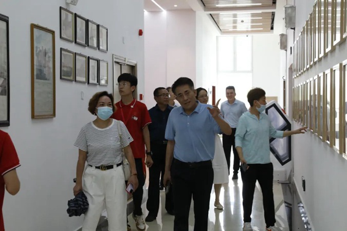 吴荣宝一行参观了东方红广场、嘉兴楼实训基地,到韶山楼、井冈山楼参观了红色文化及产教工坊、京东直播实训室,经红色连廊到“南泥湾"参观了师生劳动基地,到北平楼参观了伟人塑像厅、红色藏品展厅、百年党史馆、国防教育展馆等。