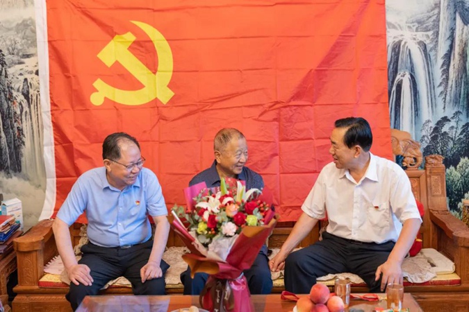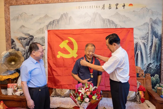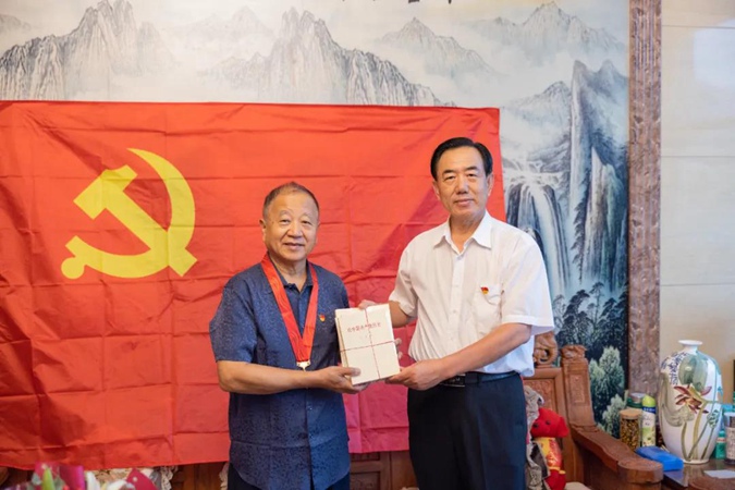 滨州市高级技工学校领导上门为老党员颁发“光荣在党50年”纪念章