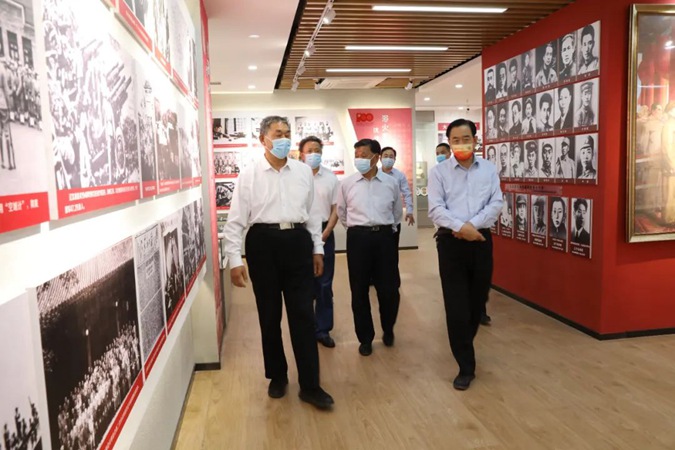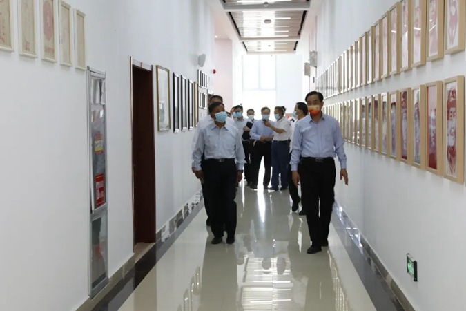 郭德纲一行参观了东方红广场、实训中心,到井冈山楼参观了合作办学项目产教工坊和京东电商直播实训室,到北平楼参观了红色图书馆、伟人塑像厅、党史教育展馆等。