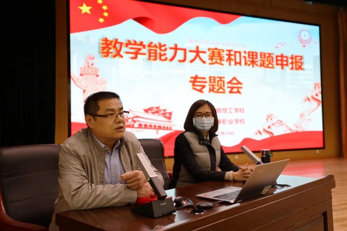 教务科副科长吴海梅以《乘风破浪,扬帆起航》为题,介绍了学校近年来教学能力大赛参赛情况,分享了自己对比赛的看法和参赛经验,对备赛策略进行了详细讲解;解读了高质量教学创新团队的标准及要求,鼓励老师们以此为契机不断提升自身教学能力。
