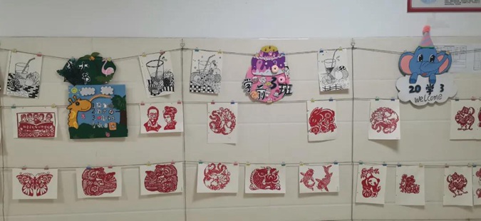 学生展出的作品种类丰富,造型多样。简笔画和线描画勾勒出一事一物的简单美好;班级牌体现了各个班级不同的特色和风格,凝聚着班级的力量;区角牌作为幼儿园环境创设的一部分,是艺术字、绘画和手工等多种元素的集合,充分体现出同学们的奇思妙想,异常生动有趣;剪纸刻纸作品更是精雕细琢,各种形象跃然于纸上。