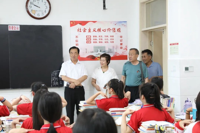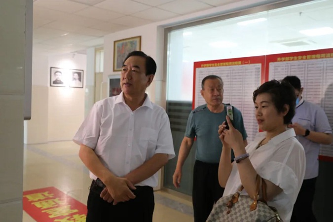 郭华一行参观了红色校园文化及红色展馆,对学校红色办学大加赞赏,认为学校红色教育特色鲜明,红色文化对学生树立正确的世界观、人生观、价值观能够起到很好的教育作用,具有很强的借鉴作用。