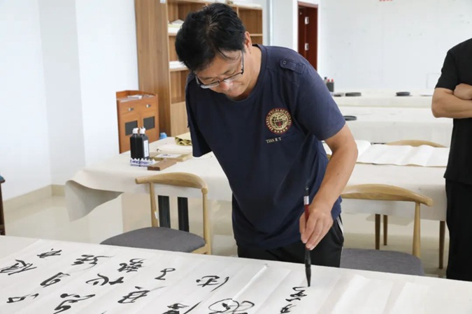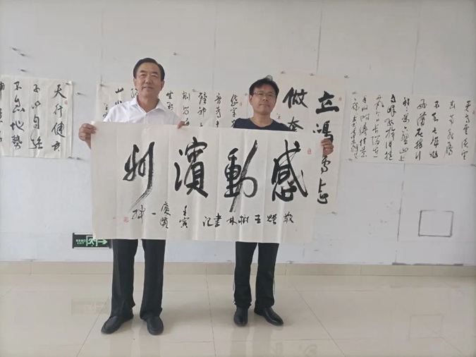 座谈中,曾庆贤与学校领导就红色教育及学生管理进行了深入研讨,并在北平楼七彩画室挥毫泼墨,为学校留下墨宝。