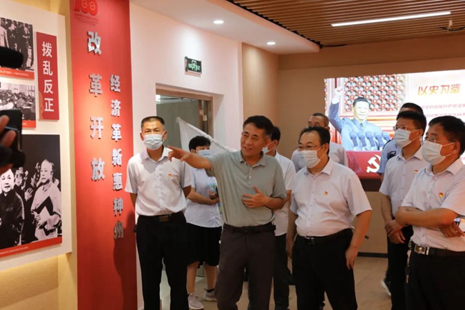 6月24日上午,滨州中纺银泰实业有限公司党支部书记、总经理郭华一行19人到滨州市高级技工学校参观。红色思政教学中心主任毛岳军陪同。