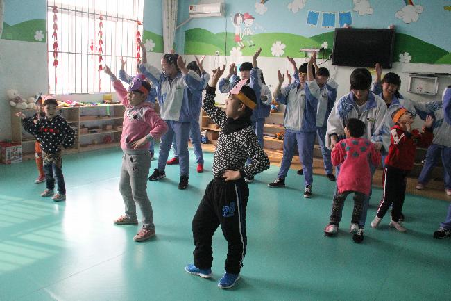 随后,学生们表演了精心准备的文艺节目,当同学们跳起《小苹果》时,孩子们也一块参加进去跳了起来;尽管由于各种原因,他们跳的并不标准,但快乐洋溢在每一个孩子的脸上,欢声笑语不绝于耳,现场气氛异常活跃。