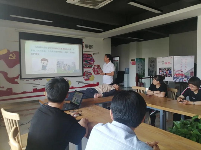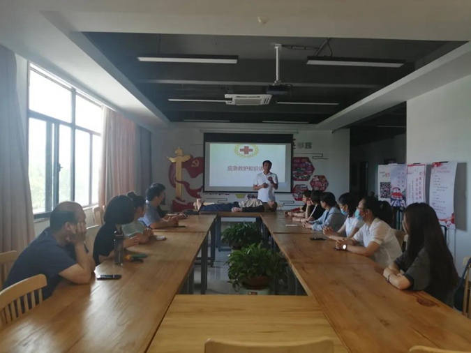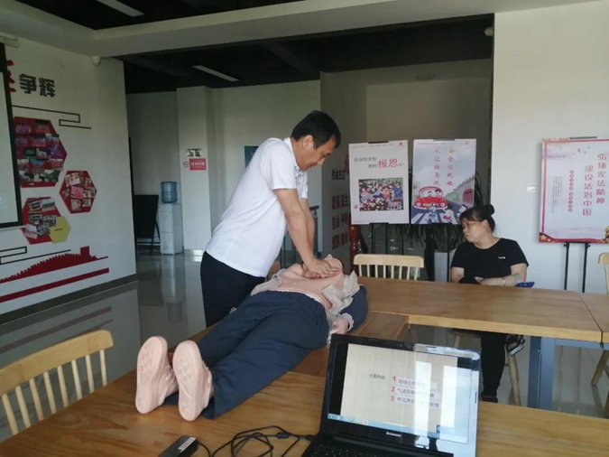 6月18日上午,滨州市高级技工学校机关党委组织党员走进文苑社区,为社区群众开展应急救护知识讲座,基础部党支部、校红十字会许建光老师主讲。