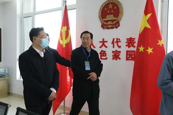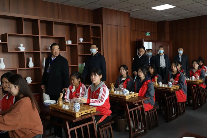王树林对各位代表的到来表示欢迎,并简要介绍了学校红色办学情况。随后,在学生讲解员的引领下,各位人大代表参观了东方红广场、嘉兴楼实训基地及韶山楼班级文化,到井冈山楼参观了产教工坊、京东直播实训室、VR教室,经红色连廊到“南泥湾"参观了师生劳动基地,到北平楼参观了廉政文化作品展、伟人塑像厅、雷锋展厅、红色图书馆、百年党史馆、校史馆,在八楼参观人大代表红色家园、美术馆、书画室,在“e盏茶室”现场观摩了师生茶艺课。