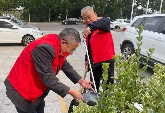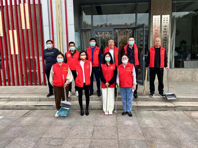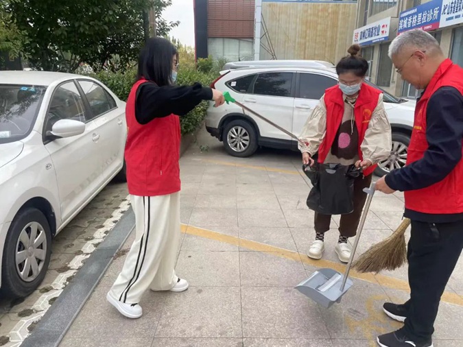 首先,党员来到文苑社区开展“双报到”活动,帮助社区进行环境整治。大家身穿红马甲,手持扫帚、夹子等工具,清除路面及绿化带内垃圾和杂草,为全国文明城市创建工作添砖加瓦。