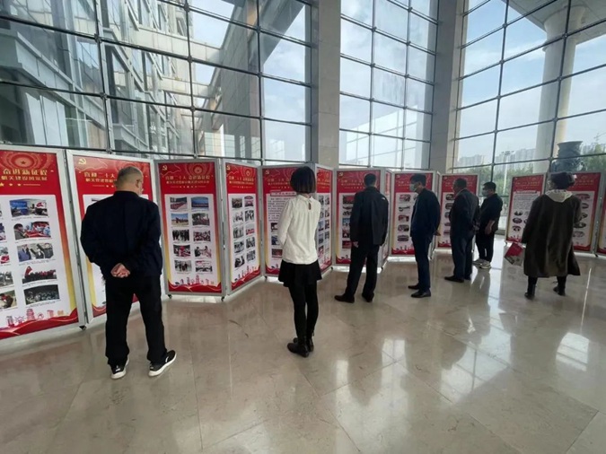 “双报到”活动结束后,全体党员集体参观了由区委宣传部主办的“喜迎二十大奋进新征程”系列主题展览。展览内容包括机关党建暨模范机关建设风采展、主题党史图册展、主题书画展、主题征文展、主题摄影展等,展现了我区人民群众对二十大即将召开的殷切期盼。