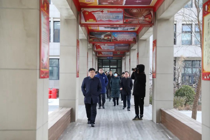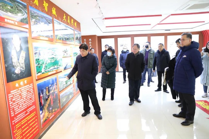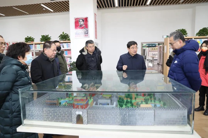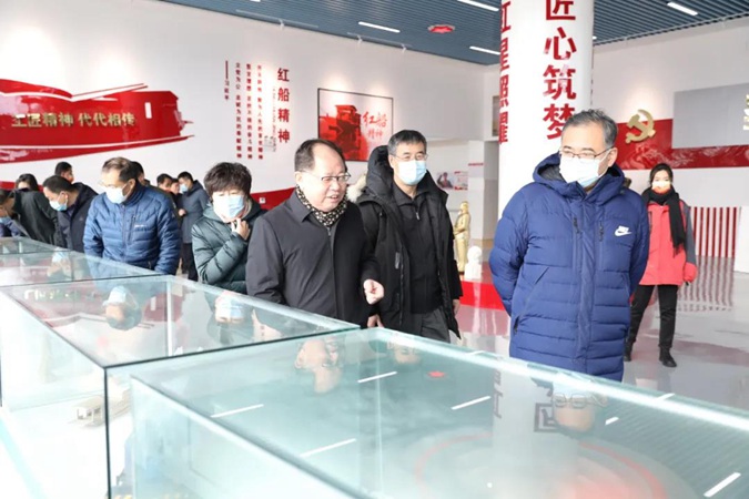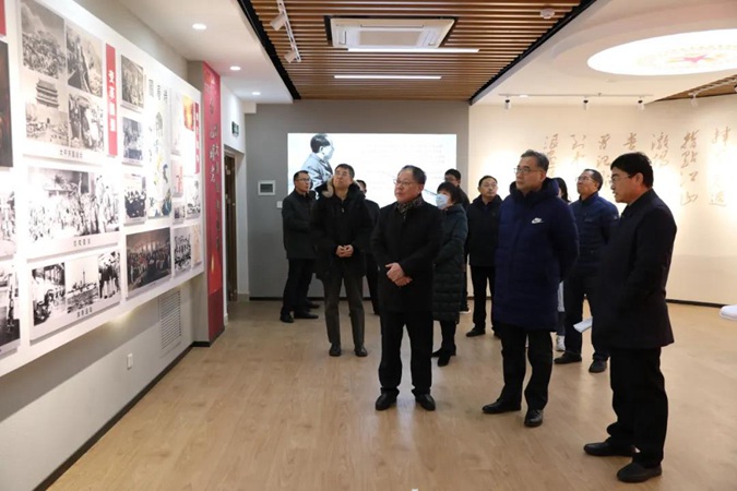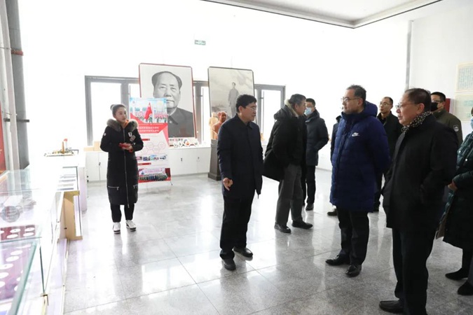 在讲解员讲解引导下,李庆义一行参观了东方红广场,到嘉兴楼参观了实训基地,到韶山楼参观了教学楼红色文化建设,经红色连廊到井冈山楼参观了产教融合项目产教工坊,最后到北平楼参观了伟人塑像厅、红色藏品展馆、将军书画展厅及党史教育展馆、校史馆等。