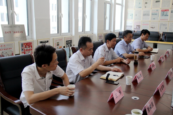 7月6日下午,滨城区关心下一代工作委员会(简称关工委)常务副主任徐建设,区关工委副主任赵长福,区委组织部副部长、老干部局长高风阁,区关工委办公室主任刘金堂,科员王乐一行5人来校调研。学校党委副书记、校长王树林,党委副书记史文莲,党委委员、副校长、区教育局长刘岳出席会议,学校关工委特邀顾问张满堂,党政办公室主任杜湖亭,学校关工委副主任、学工科长张砚春,基建办主任王之冰,“五好志愿者”张树强一起参加了调研。