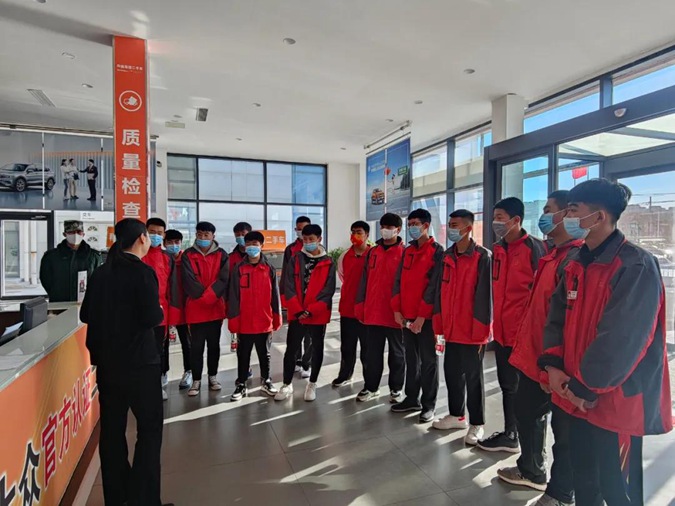 为了让学生了解企业,明确就业方向,11月23日上午,滨州市高级技工学校汽车工程教学中心专业教师及40余名学生前往滨州和硕汽车销售有限公司参观学习。招生就业科副科长解忠磊,汽车工程教学中心主任辛立胜带队。