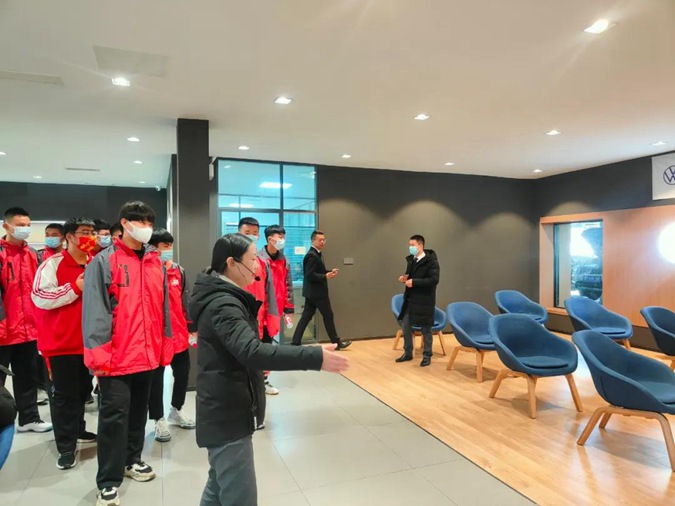 座谈结束后,在企业技术总监的带领下,学生们分组对整个公司各个工作岗位进行认知学习。分别参观了销售展厅、二手车展厅,实地观摩学习了企业机修岗位、钣金岗位、涂装岗位。每个岗位都安排了企业的技术总监进行详细讲解和实际操作,技师讲的仔细,学生听的认真,进一步明确了企业的运营流程和岗位技术要求。