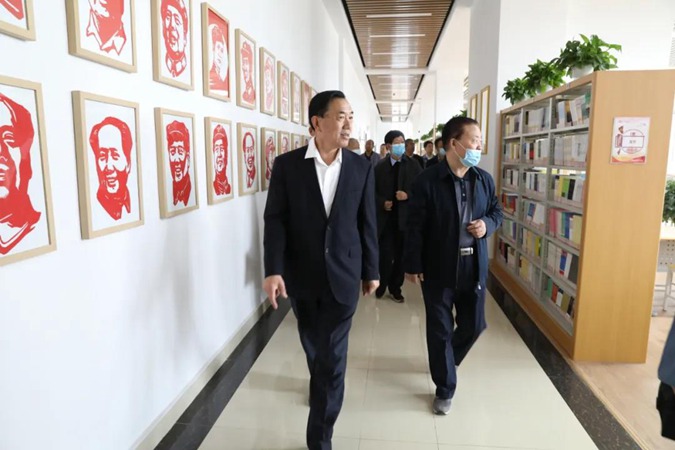 李成明一行参观了学校实训中心、东方红广场、红色文化长廊、红色育人展厅、红色图书馆等,实地调研红色校园文化建设情况。