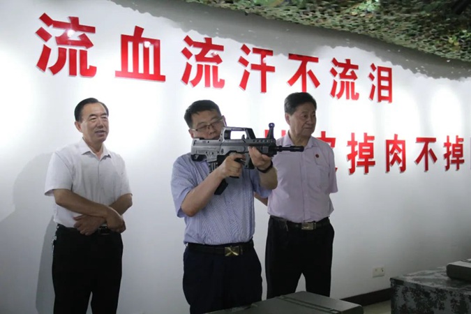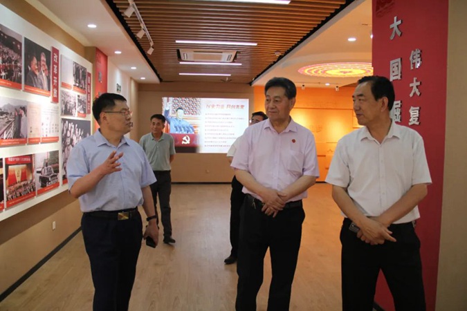 首先,在学校领导陪同下,宋绍甫一行参观了北平楼伟人塑像厅、将军书画展厅、红色藏品展厅、百年党史馆、国防教育展馆等。