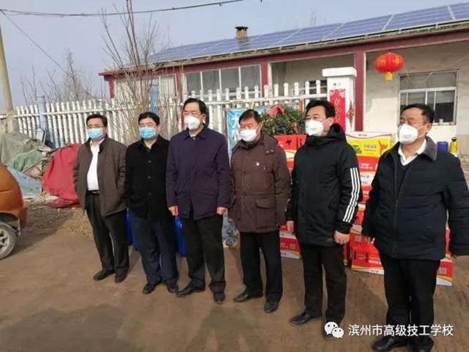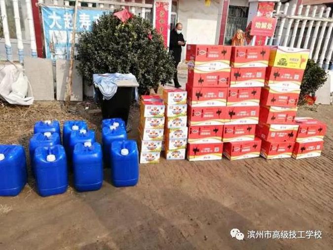 2月9日,在防控新冠肺炎疫情的关键时期,滨州市高级技工学校班子成员带领部分中层干部到学校派驻驻村干部村看望慰问奋战在疫情防控一线的驻村“第一书记”,并送去了方便面、火腿肠(每村各20箱)等慰问品以及消毒液(每村500斤)等疫情防控所需的紧缺物资。