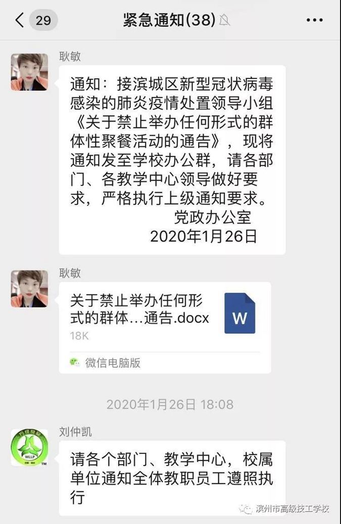 疫情防控,滨州市高级技工学校“十个第一时间”